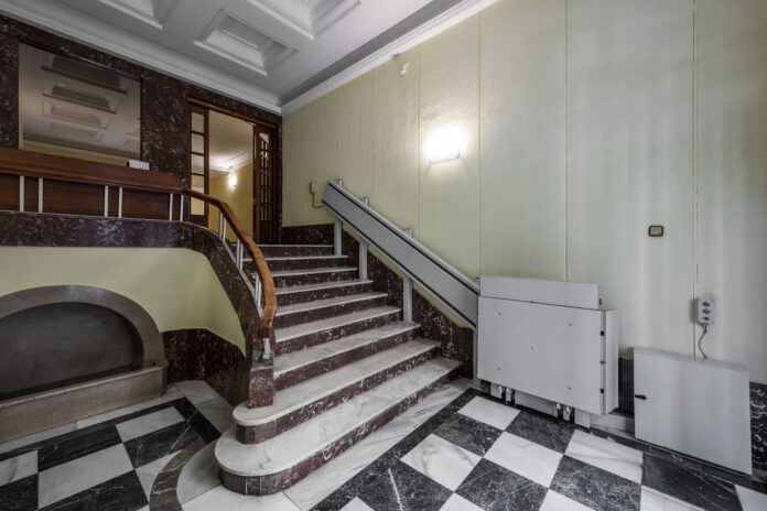 Solitamente è costituito da una guida o una rotaia fissata alla scala, su cui scorre una piattaforma o una sedia. La piattaforma o la sedia è alimentata da un motore elettrico che consente di salire e scendere lungo la guida in modo controllato. Nella maggior parte dei casi è dotato di pulsanti o joystick che consentono all’utente di controllare il movimento e di fermarsi quando necessario.