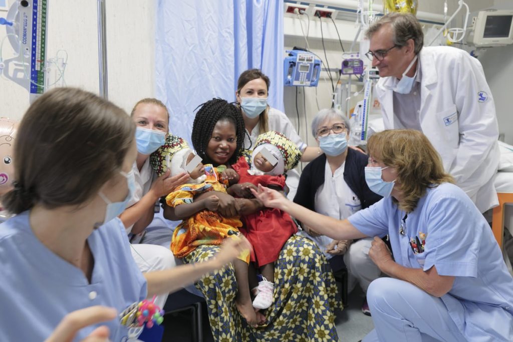 Dopo l’incontro nel luglio 2018 con la direttrice della struttura ospedaliera romana, Mariella Enoc, in missione in Centrafrica, mamma Ermine e le gemelle siamesi sono arrivate in Italia il 10 settembre 2018 nell’ambito delle Attività Umanitarie Internazionali dell’Ospedale Pediatrico della Santa Sede.